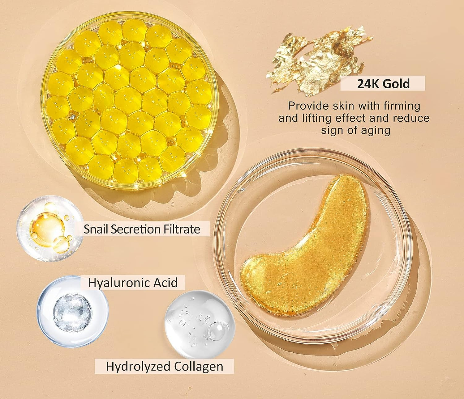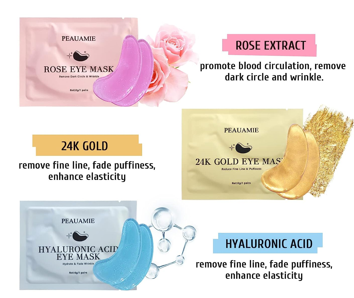 Under Eye Masks For decreasing dark circles, visibly reducing the appearance of wrinkles, fine lines and puffiness, accelerating the regeneration of skin cells and collagen around your eyes, restoring elasticity and firming skin to make you look more radiant.