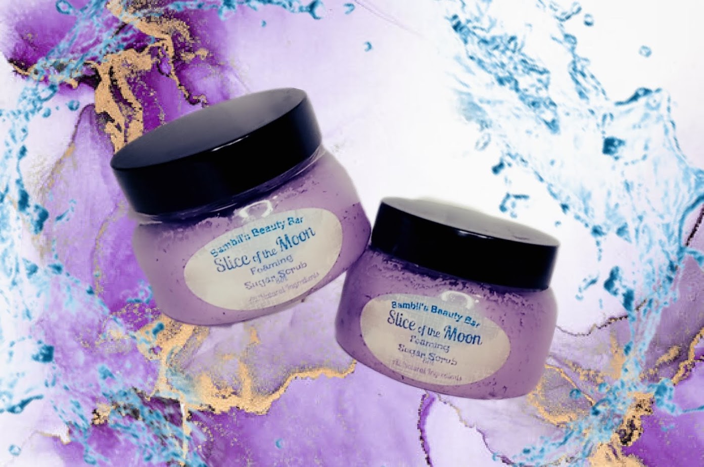 Bambii's Beauty Bar Version Of Twilight Woods in a Foaming Sugar Scrub Guarantee to leave your skin feeling lavish. A beautiful combination of berry, mandarin, mimosa, apricot and cypress wood.